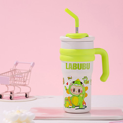 高品質可愛いラブ布カップ大容量カーアイスカートゥーンステンレススチール吸引ハンドル付きダブルドリンク